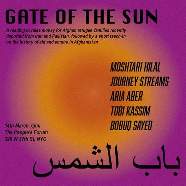 Gate of the Sun is a reading series held at The People's Forum to raise money from the imperial core and redirect it to people facing political adversity in the Global South.